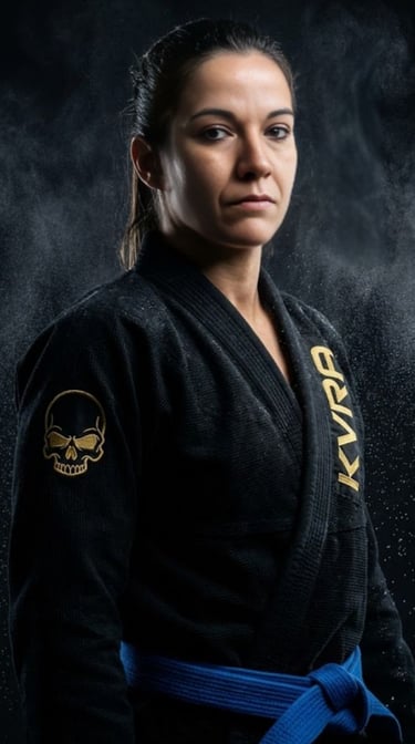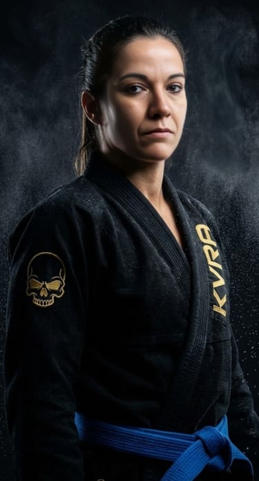 Vanesa, cinturon azul de bjj. Es la persona encargada de la gestión de grupos y eventos del equipo. Amplia experiencia en defensa personal.